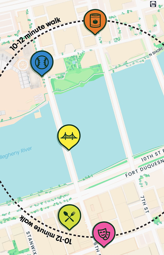 Each city’s scavenger hunt features 5 to 6 stops within a short walking radius of the event. Locations are chosen to capture the city’s character and culture, highlighting staple spots that make the place feel unique. In Pittsburgh, for example, this could include landmarks near the Roberto Clemente Bridge like PNC Park or the Andy Warhol Museum.